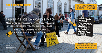 Nesta quinta-feira, dia 19 de novembro às 20h30Tania Alice realiza uma noite de lançamento de seu novo livro, “Manual para performers e não performers -21 ações para produzir felicidade”. No encontro Tania nos conta sobre sua trajetória e a proposta deste livro, em um bate-papo ao vivo com Eleonora Fabião e com a participação especial de Rita Von Hunty - que assina o prefácio do livro!